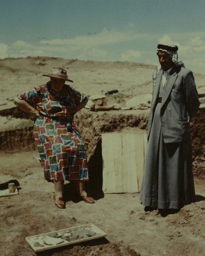 Agatha Christie with Sheik Abdullah at Nimrud, Iraq 1951 Image © The Christie Archive Trust